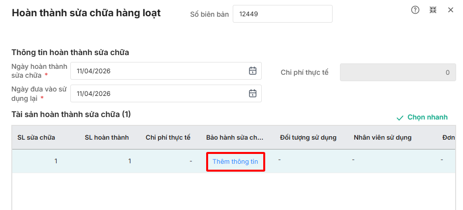 Bước 3: Khai báo các thông tin hoàn thành sửa chữa.