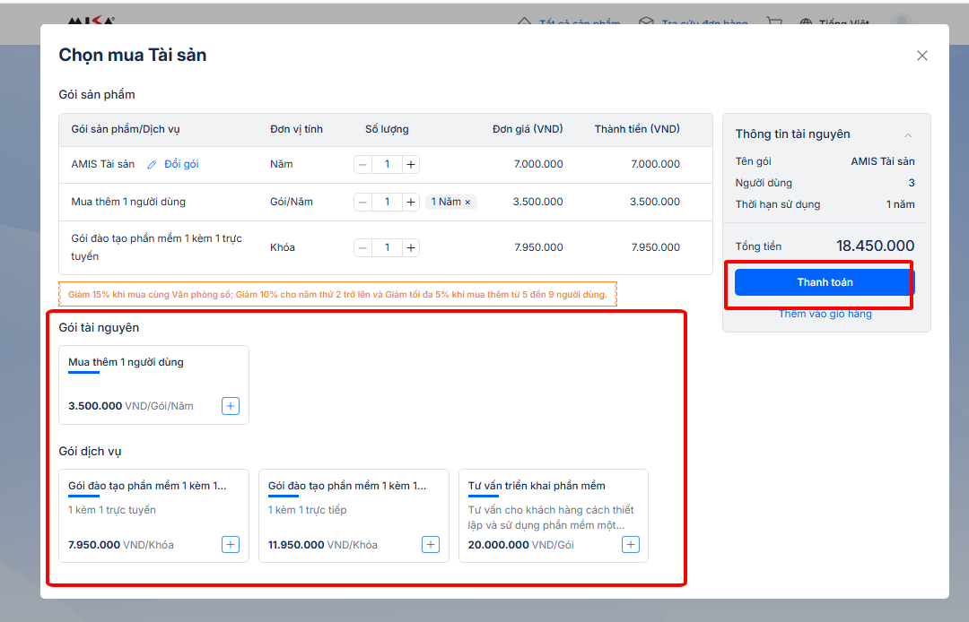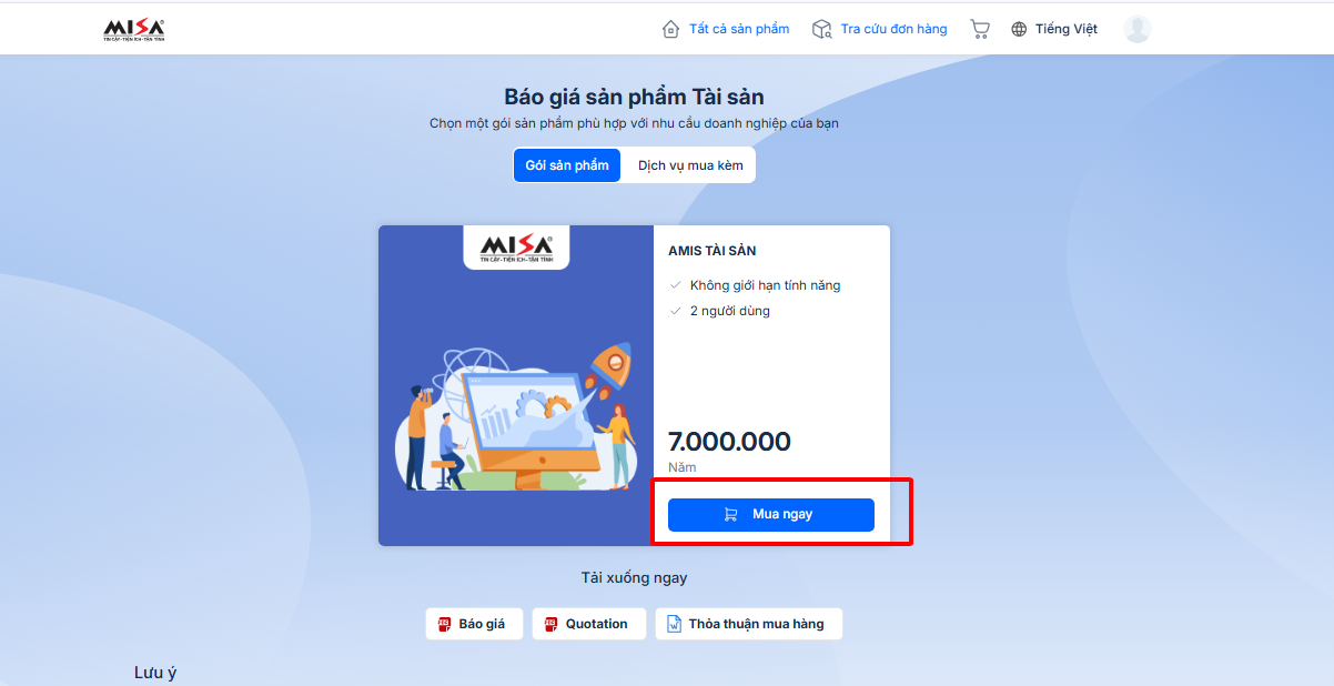 2.1. Mua ứng dụng AMIS Tài sản