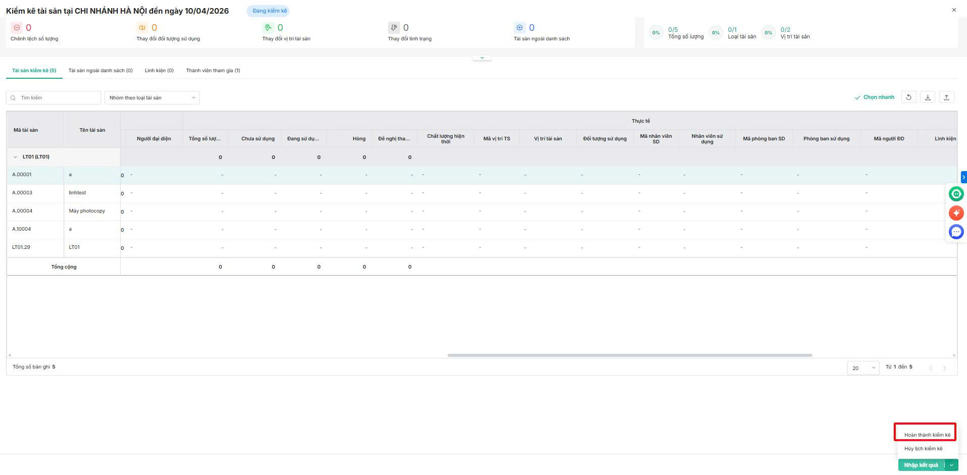 Bước 5: Sau khi kiểm kê xong, nhấn Hoàn thành kiểm kê: