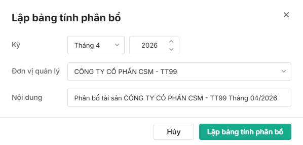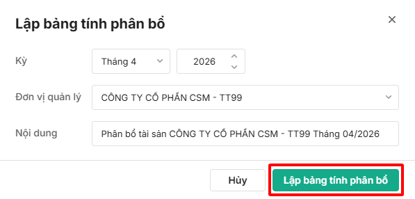 Bước 4: Nhấn Lập bảng tính phân bổ: