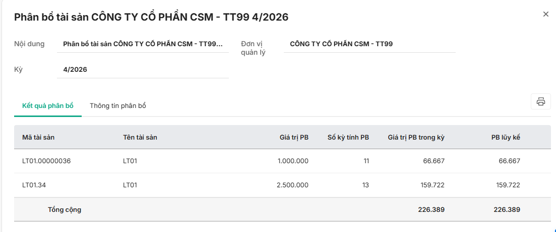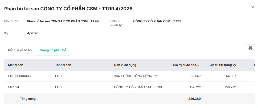 • Tại tab Kết quả phân bổ: