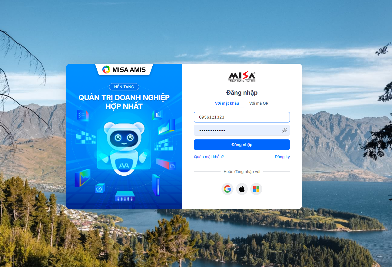 Bước 1: Truy cập web https://amisapp.misa.vn/login và đăng nhập vào chương trình
