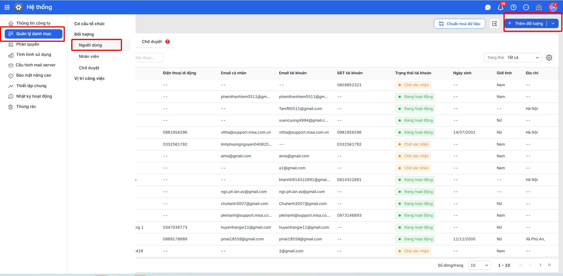 Bước 3: Chọn Quản lý danh mục\Người dùng sau đó nhấn Thêm đối tượng