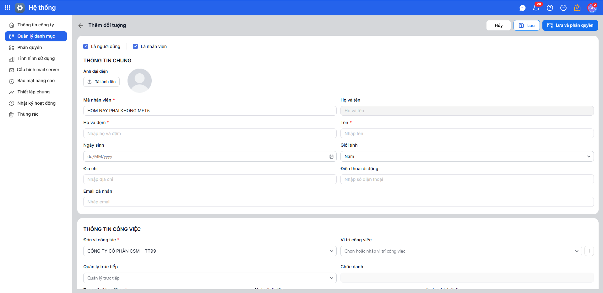 Bước 4: Nhập đầy đủ các thông tin cần thiết của người dùng sau đó nhấn Lưu