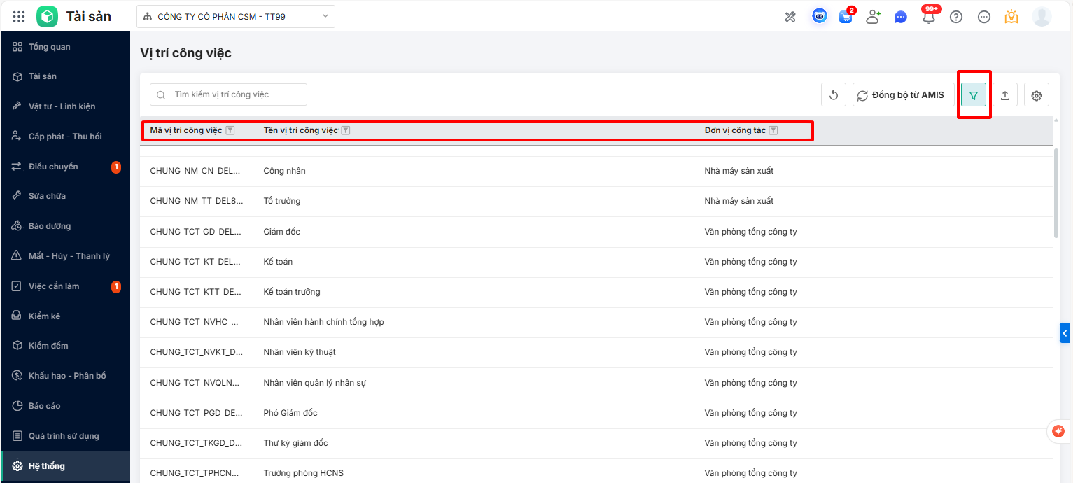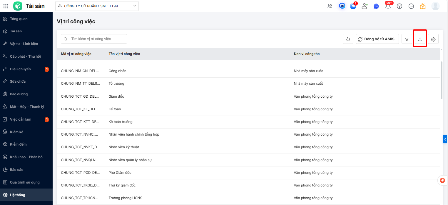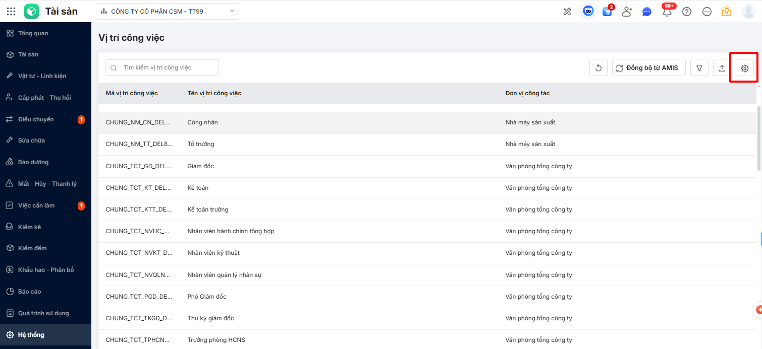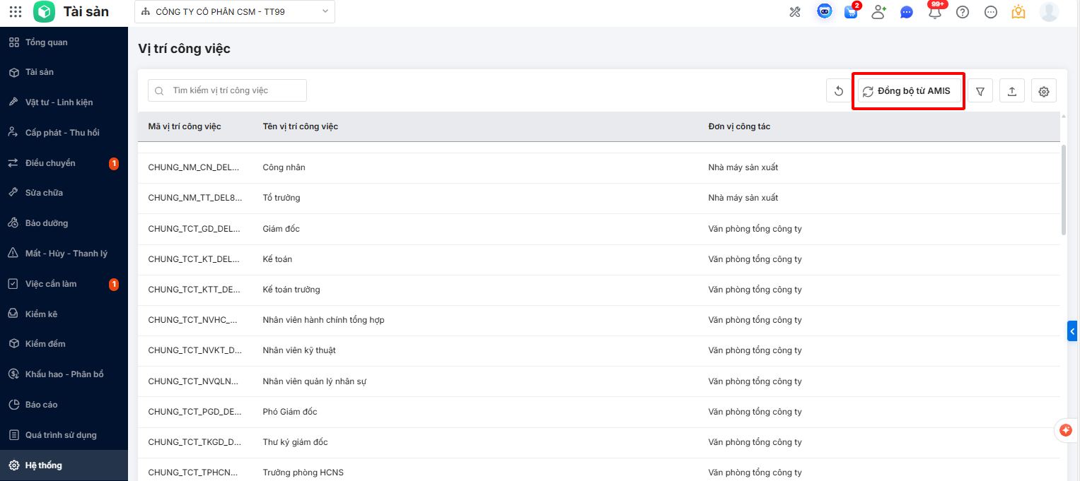 - Đồng bộ vị trí công việc từ AMIS Hệ thống