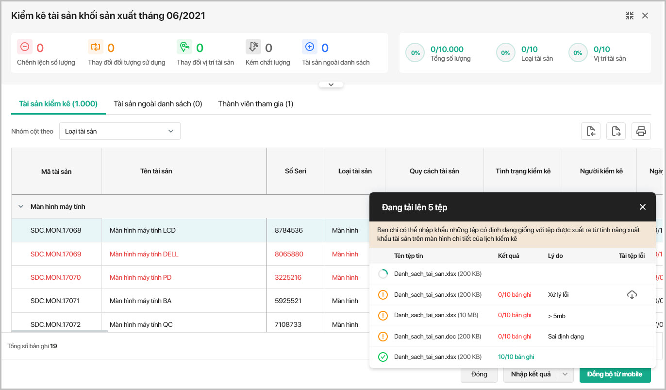 - Hướng dẫn nhập kết quả kiểm kê từ Excel