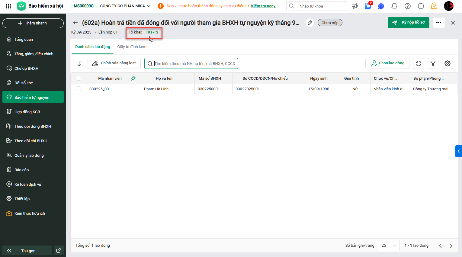 Danh sách người lao động và các thông tin cá nhân của người lao động sẽ được hệ thống đưa vào biểu mẫu ban hành của cơ quan BHXH. Để xem trước, Anh/Chị nhấn vào từng biểu mẫu.