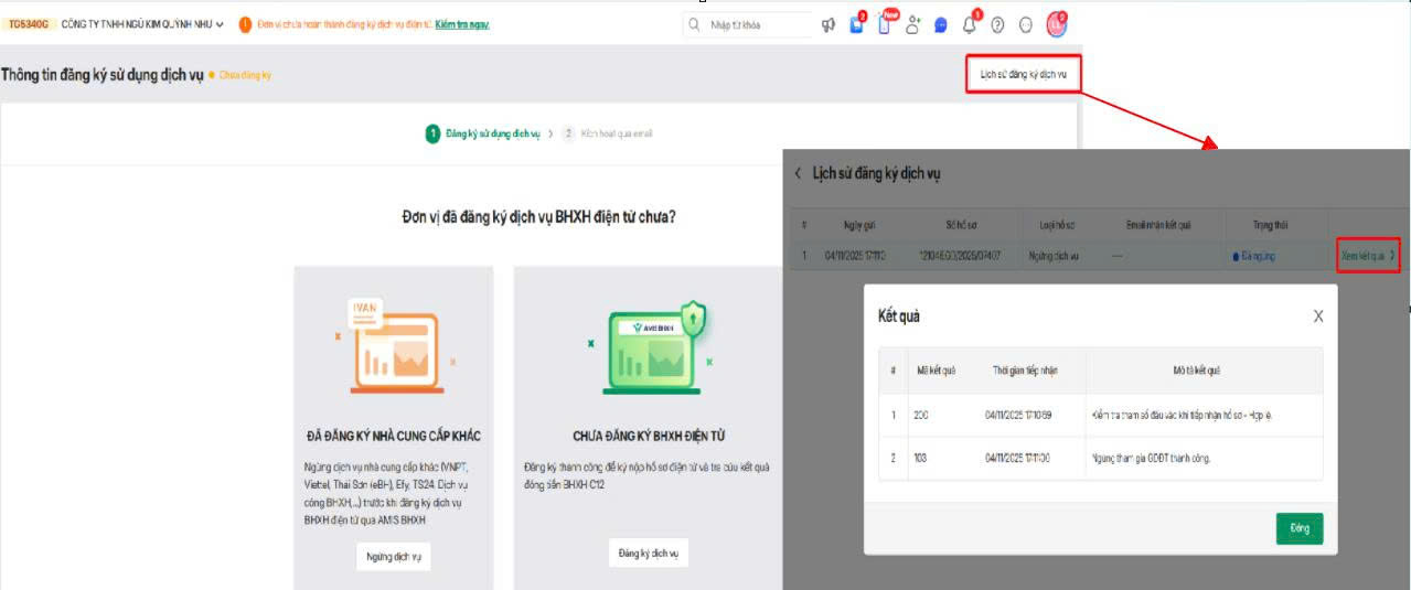 Lưu ý:  Hướng dẫn xem lịch sử đăng ký dịch vụ BHXH