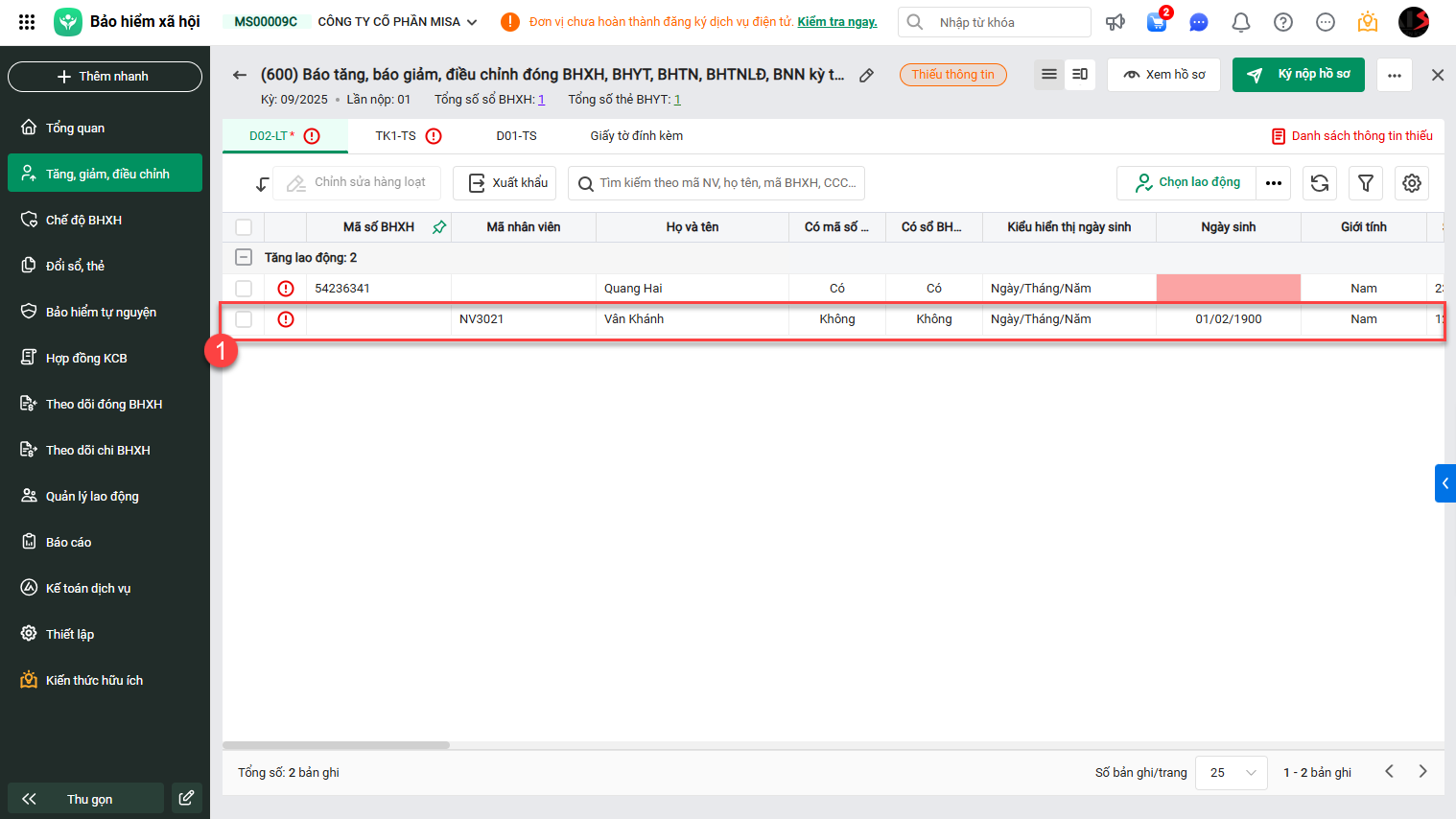 Bước 1: Tại chi tiết hồ sơ, click đúp vào thông tin lao động cần chỉnh sửa.