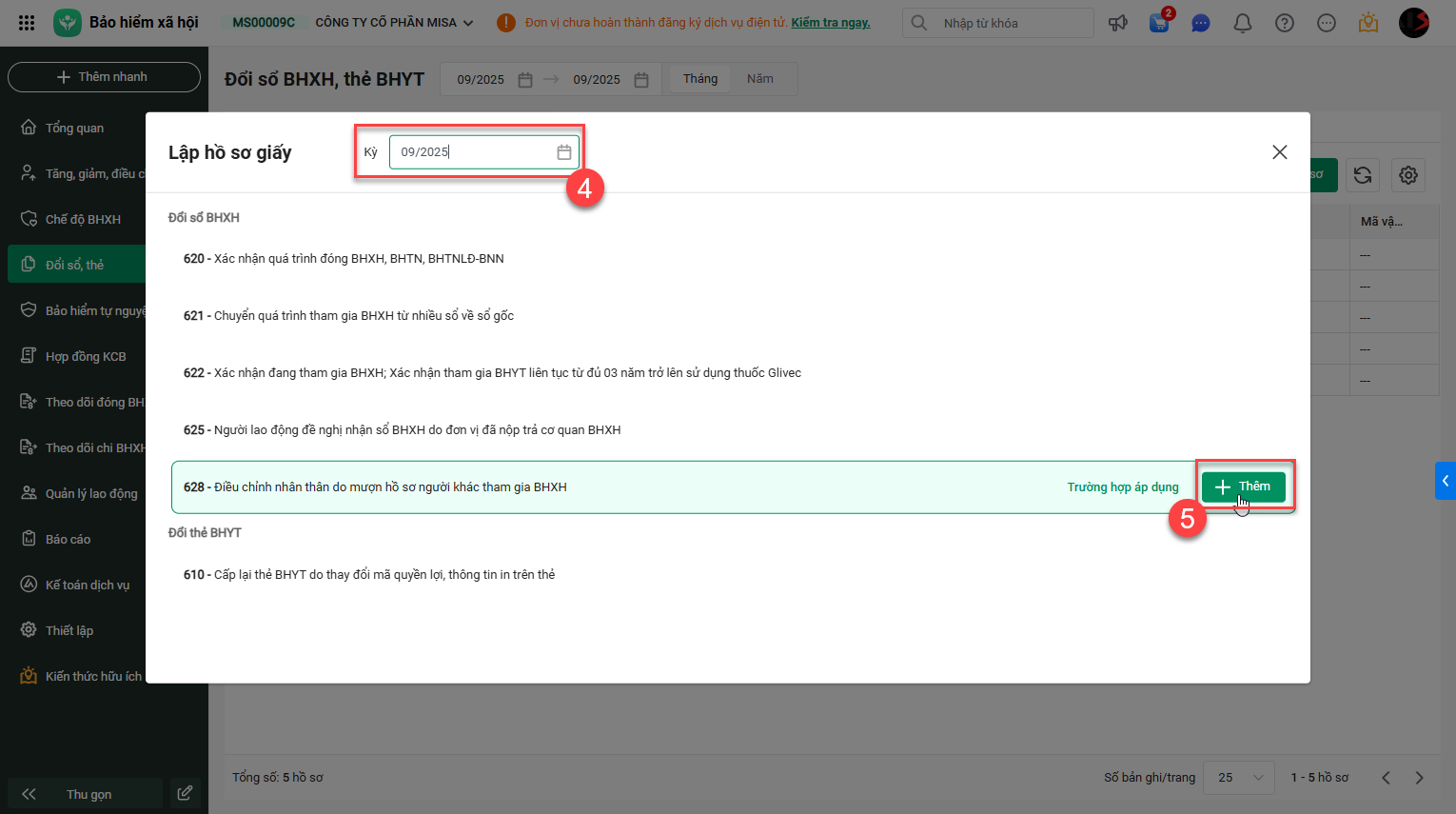 Thủ tục 628 được thực hiện khi đơn vị có phát sinh trường hợp điều chỉnh thông tin trên sổ bảo hiểm xã hội do trước đó người tham gia mượn hồ sơ của người khác để đăng ký tham gia BHXH.