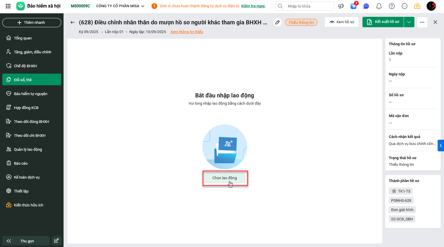 Nhấn Chọn lao động để thêm lao động vào thủ tục.