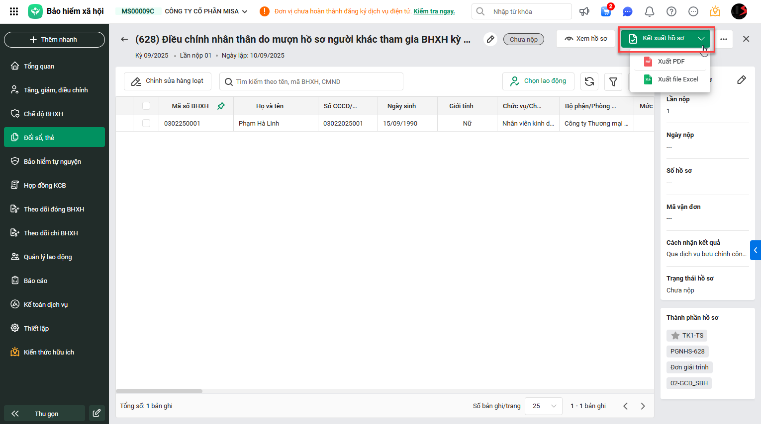 Có thể xuất hồ sơ dưới dạng pdf hoặc dưới dạng excel để chỉnh sửa sau đó nộp sang cơ quan BHXH.