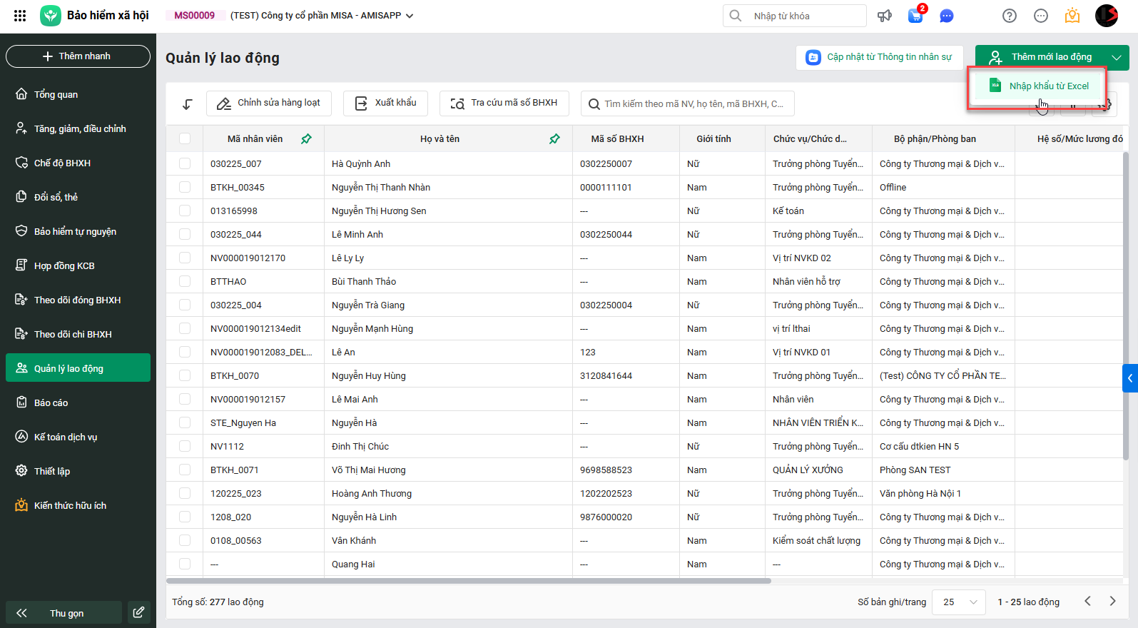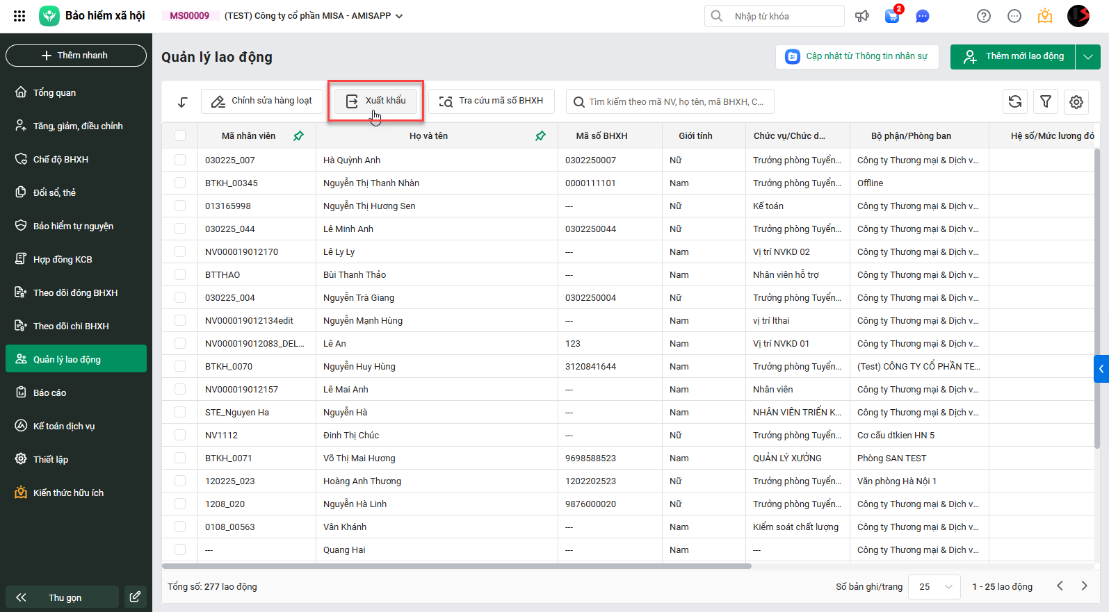 Cách 3: Xuất khẩu danh sách lao động sau đó cập nhật thông tin địa chỉ và nhập khẩu lại lên phần mềm.