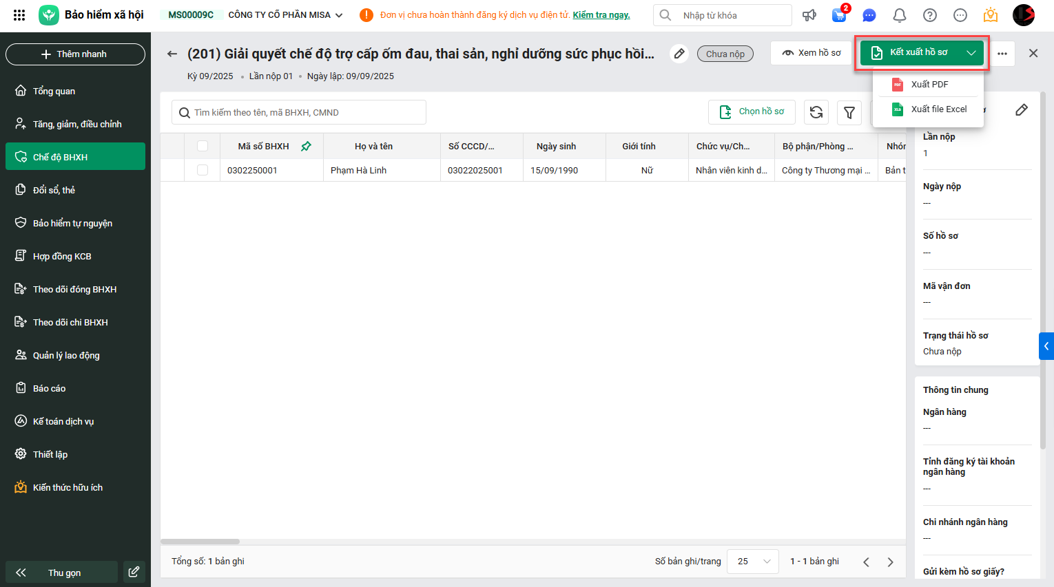 2. Đơn vị đề nghị giải quyết chế độ thai sản cho người lao động, bao gồm:
