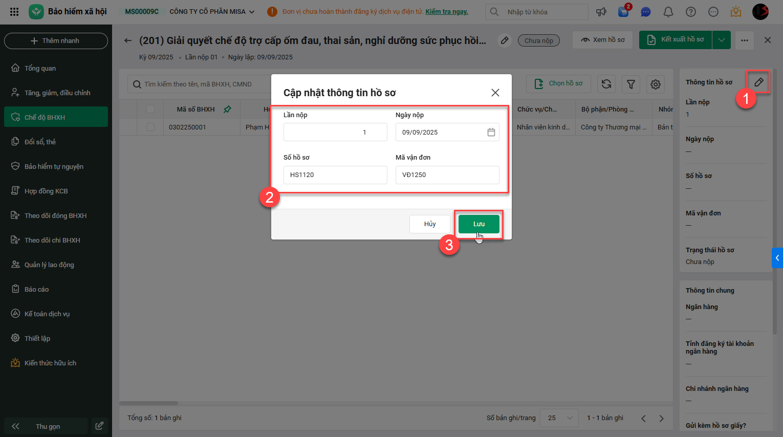 1. Đơn vị đề nghị giải quyết chế độ ốm đau cho người lao động, bao gồm: