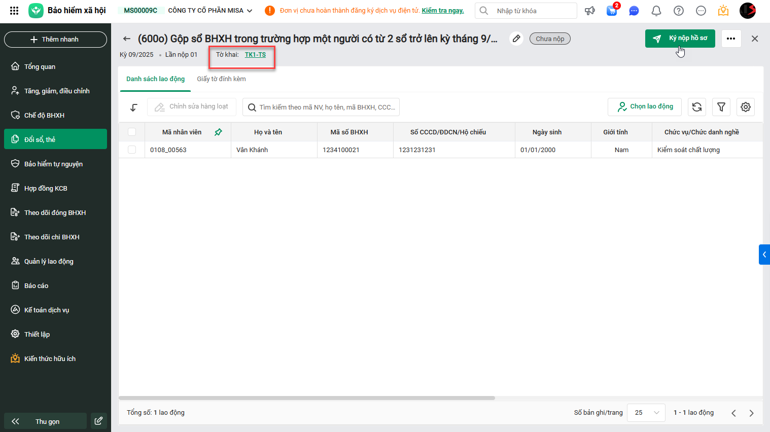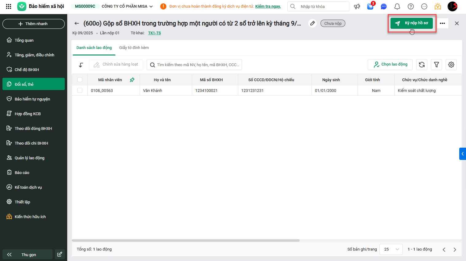 - Tích chọn lao động\nhấn Lập hồ sơ.