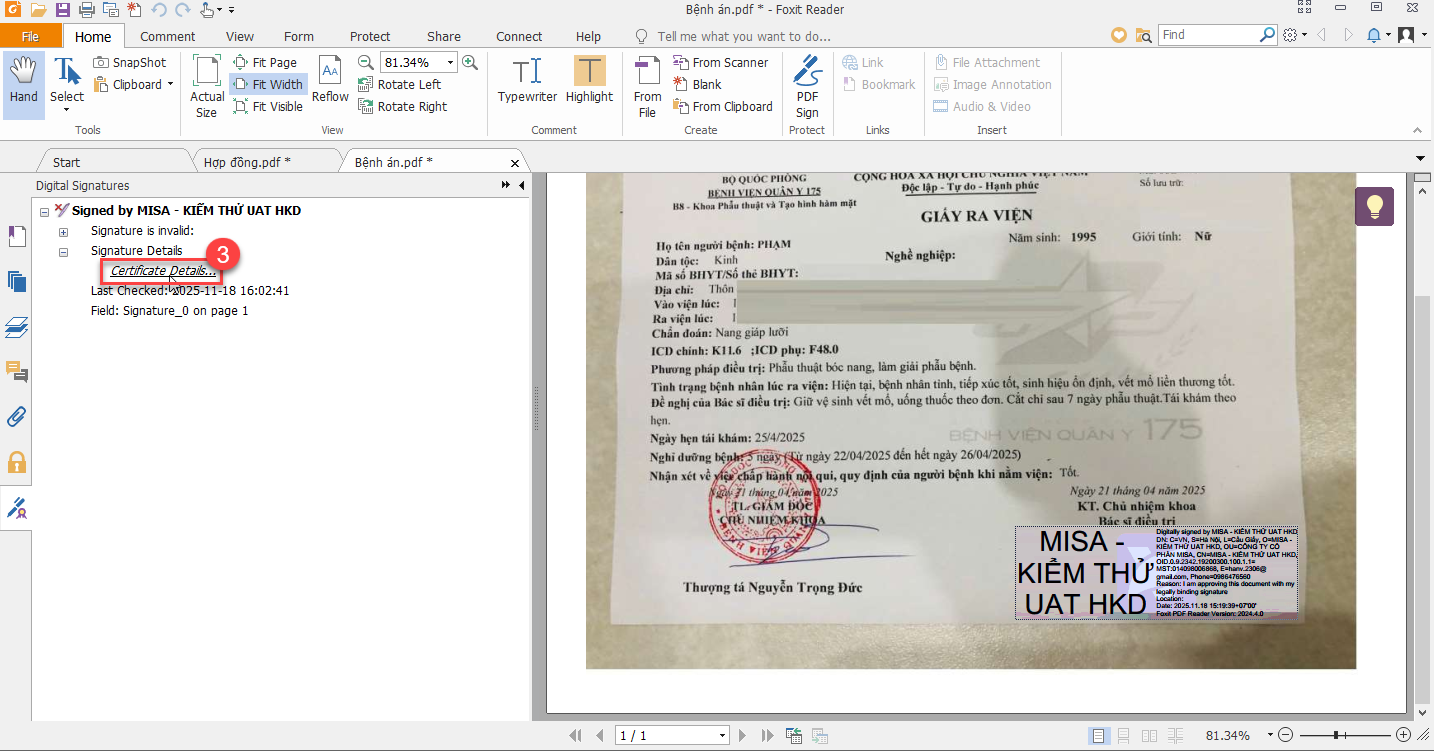 Bước 3: Click đúp vào chữ ký số\chọn Cetificate Details.