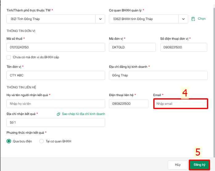 2. Lập thủ tục thay đổi thông tin đơn vị