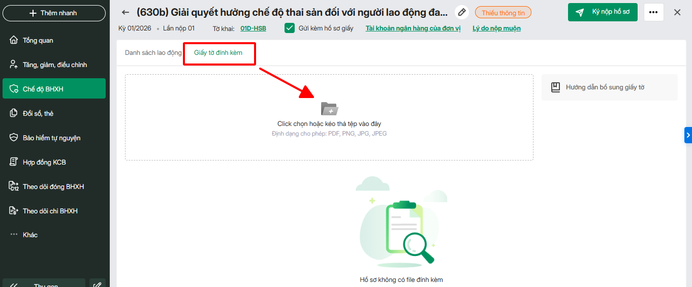 Anh/Chị bổ sung giấy tờ đính kèm như sau: