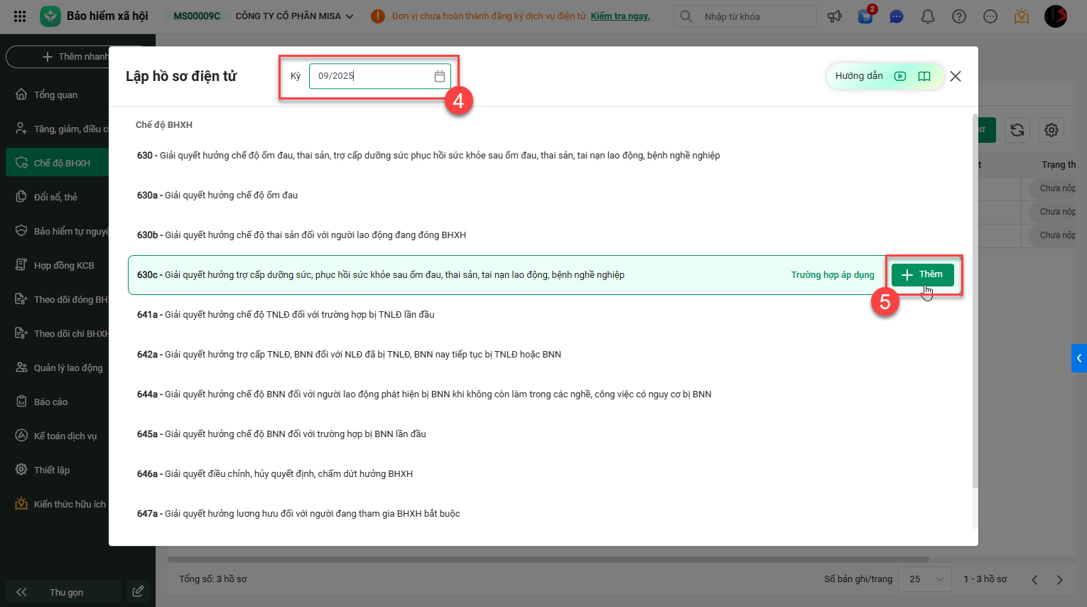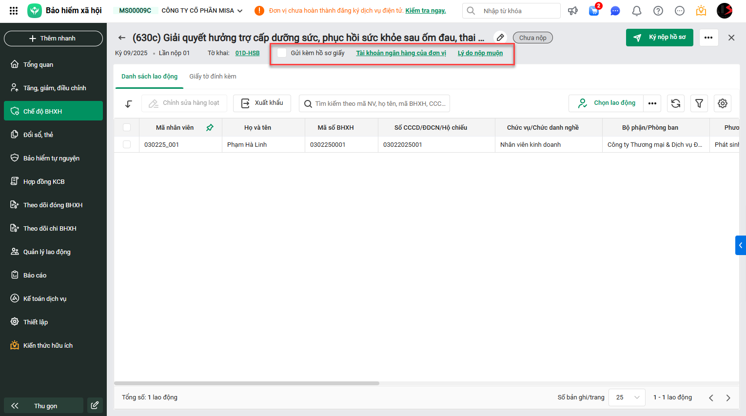 3. Sao chép hồ sơ có trạng thái chưa nộp, đang nộp, BHXH đã duyệt để tạo mới hồ sơ.