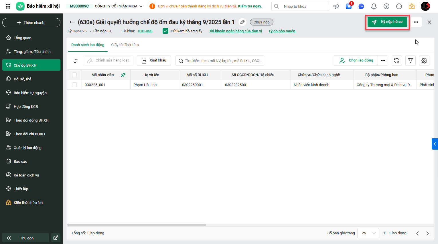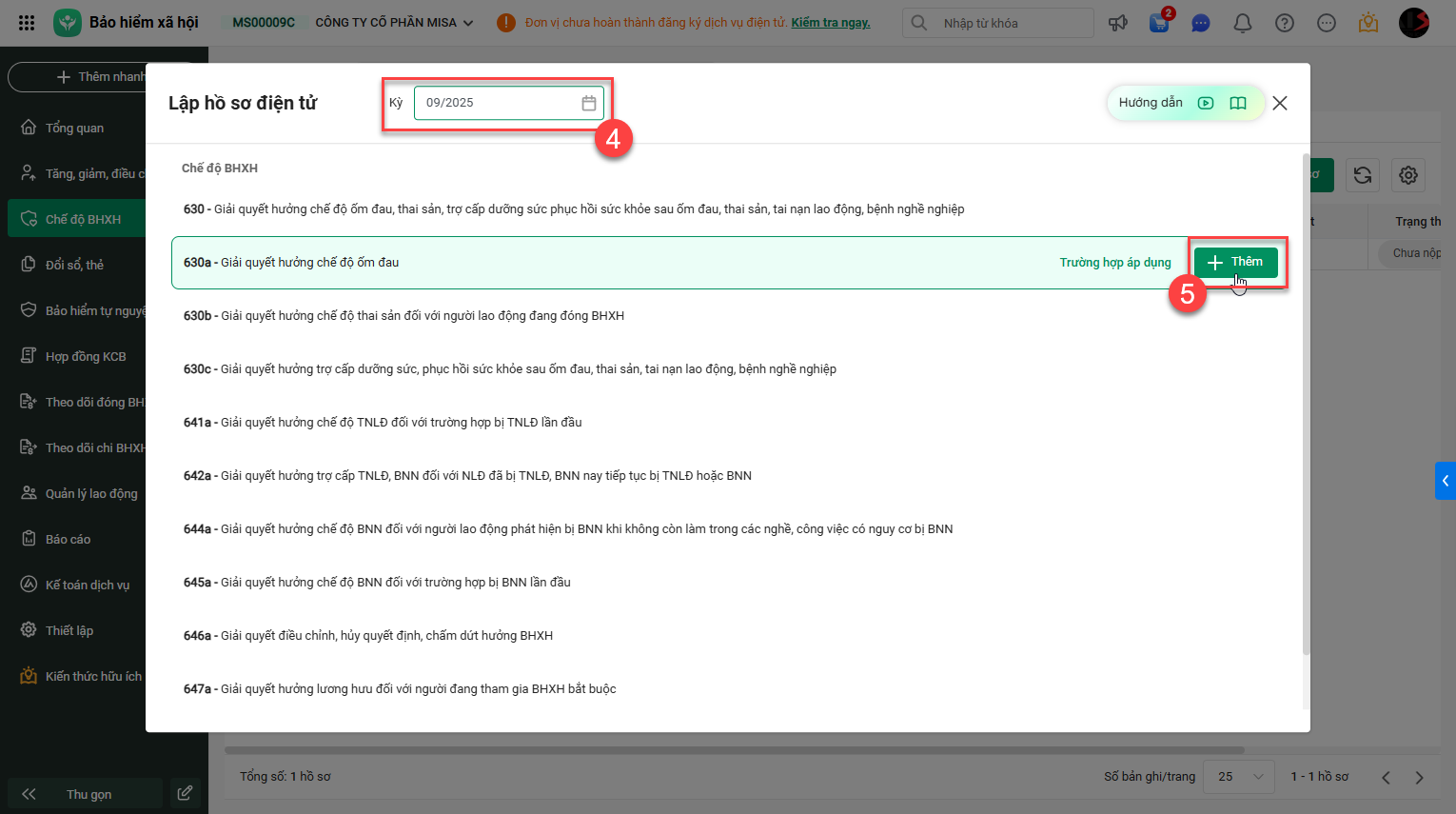 2. Lập thủ tục xét duyệt chế độ ốm đau (630a)