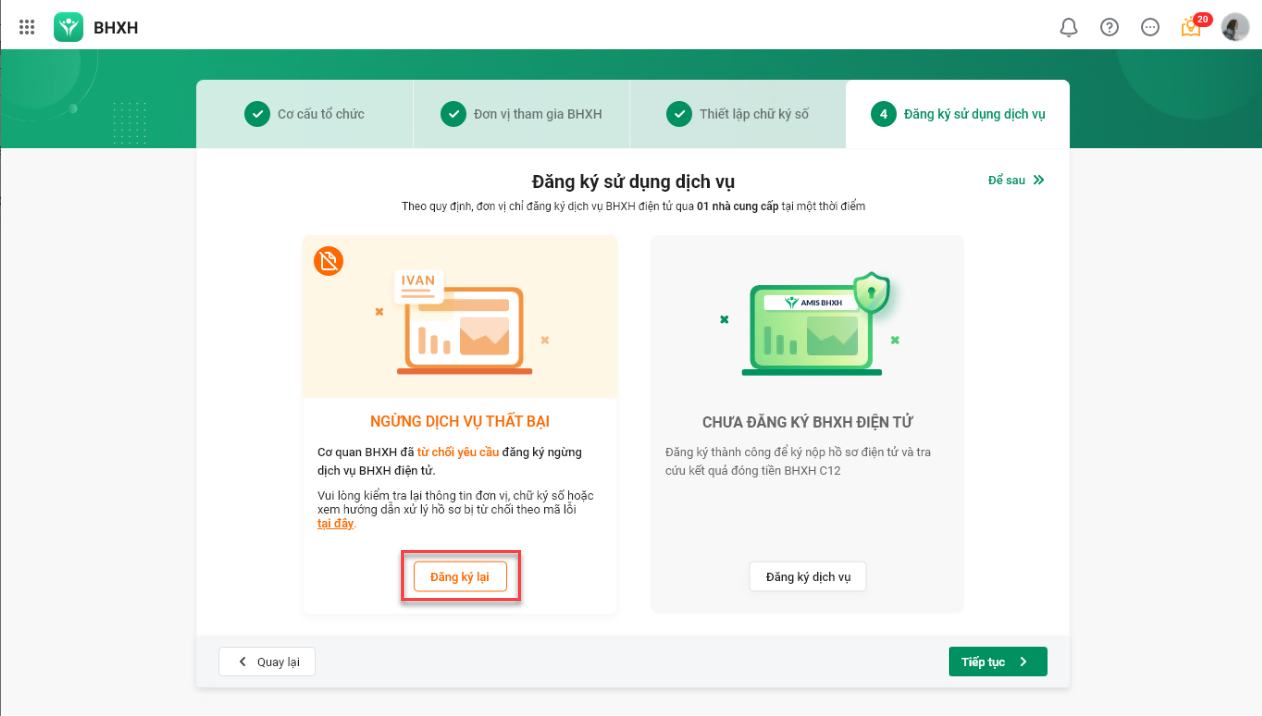 Bước 2: Đăng ký lại dịch vụ BHXH điện tử qua AMIS BHXH