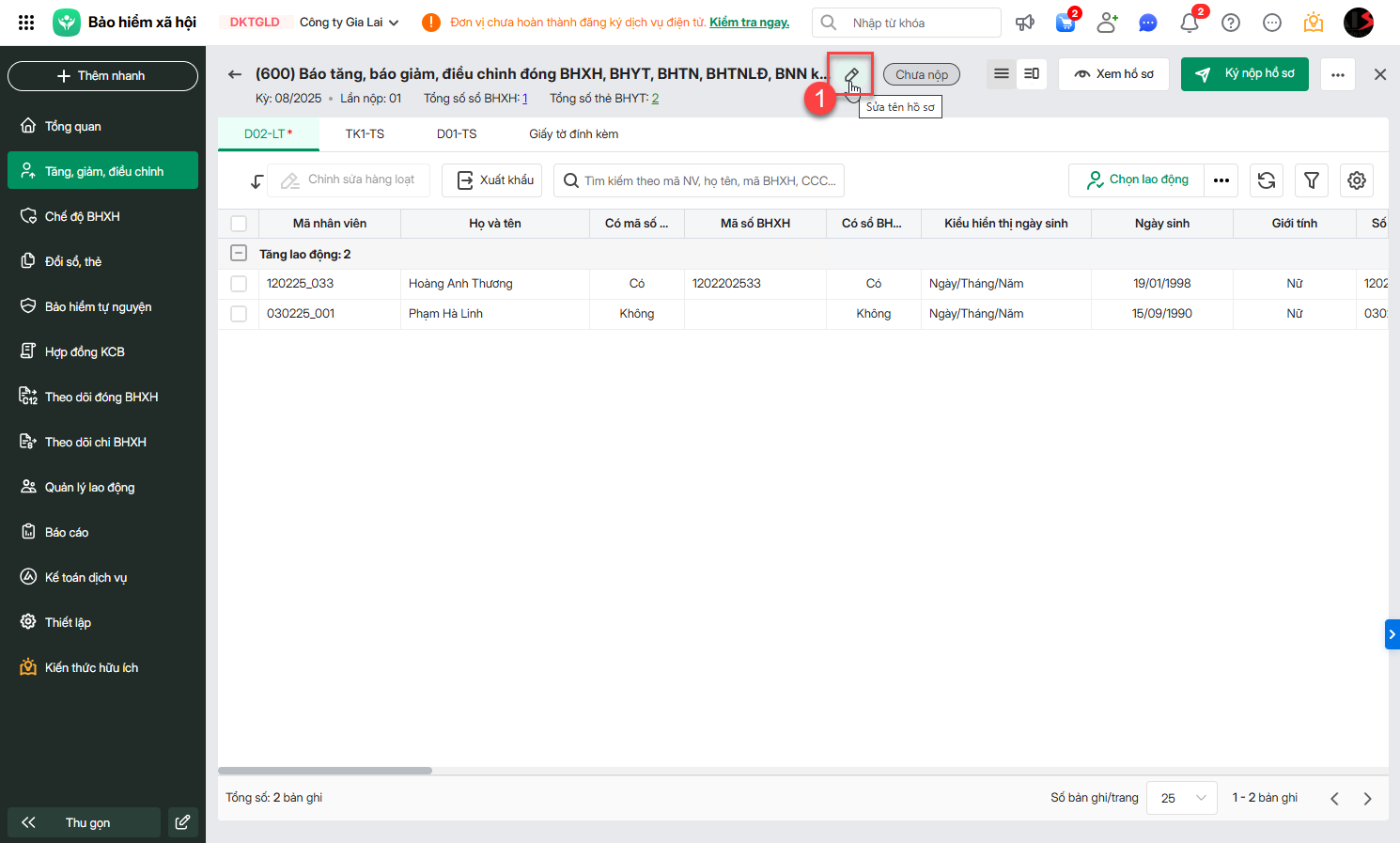 1. Click đúp vào hồ sơ muốn sửa tên.