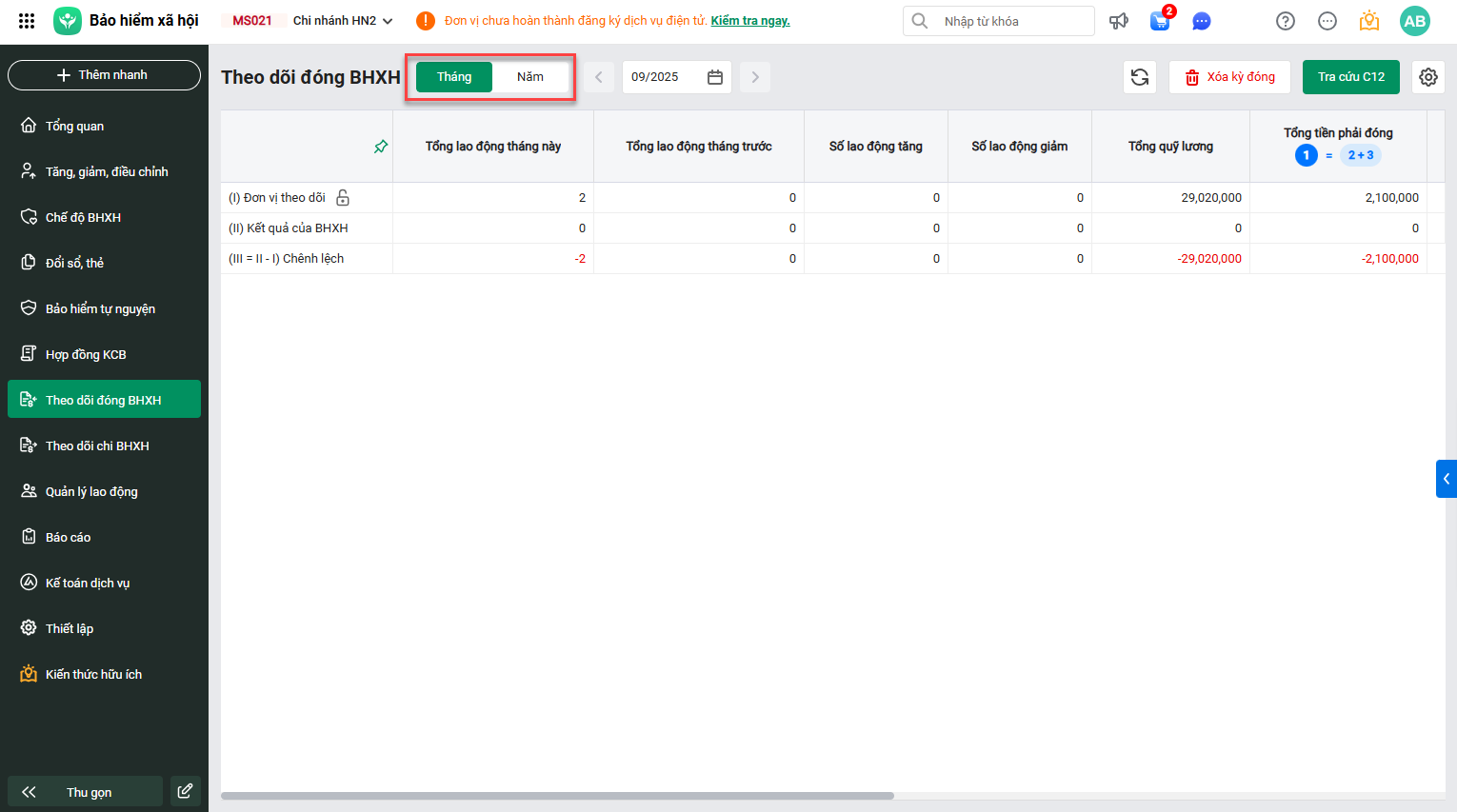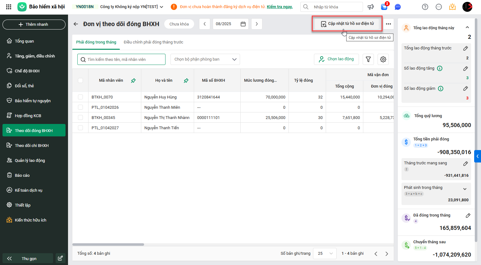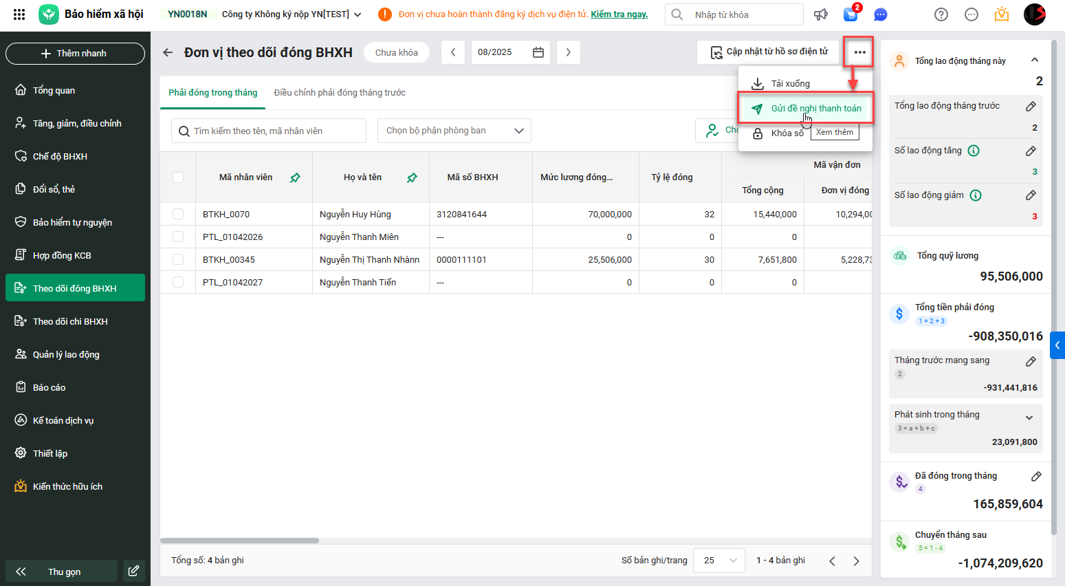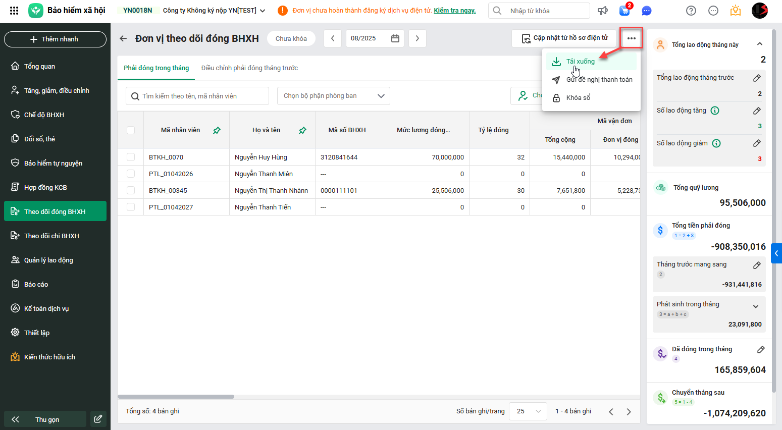 - Phải đóng trong tháng: Theo dõi lao động đang tham gia BHXH tại đơn vị.