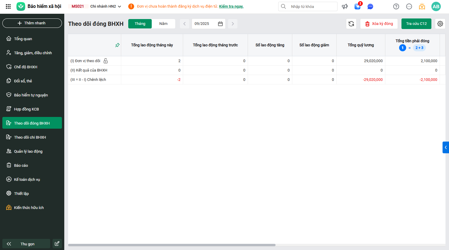- Tổng số lao động tháng này: Tổng số lao động đang tham gia BHXH tại đơn vị tháng này.