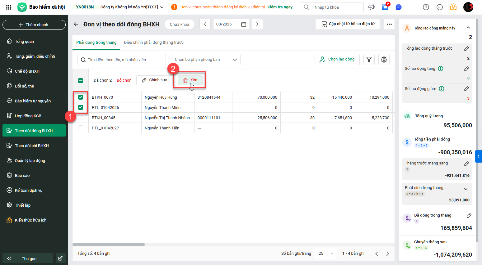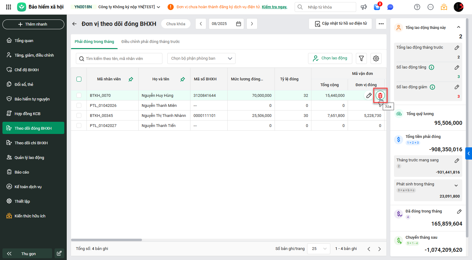 *Trường hợp muốn Xóa lao động ra khỏi kỳ theo dõi đóng, Anh/chị thực hiện như sau: