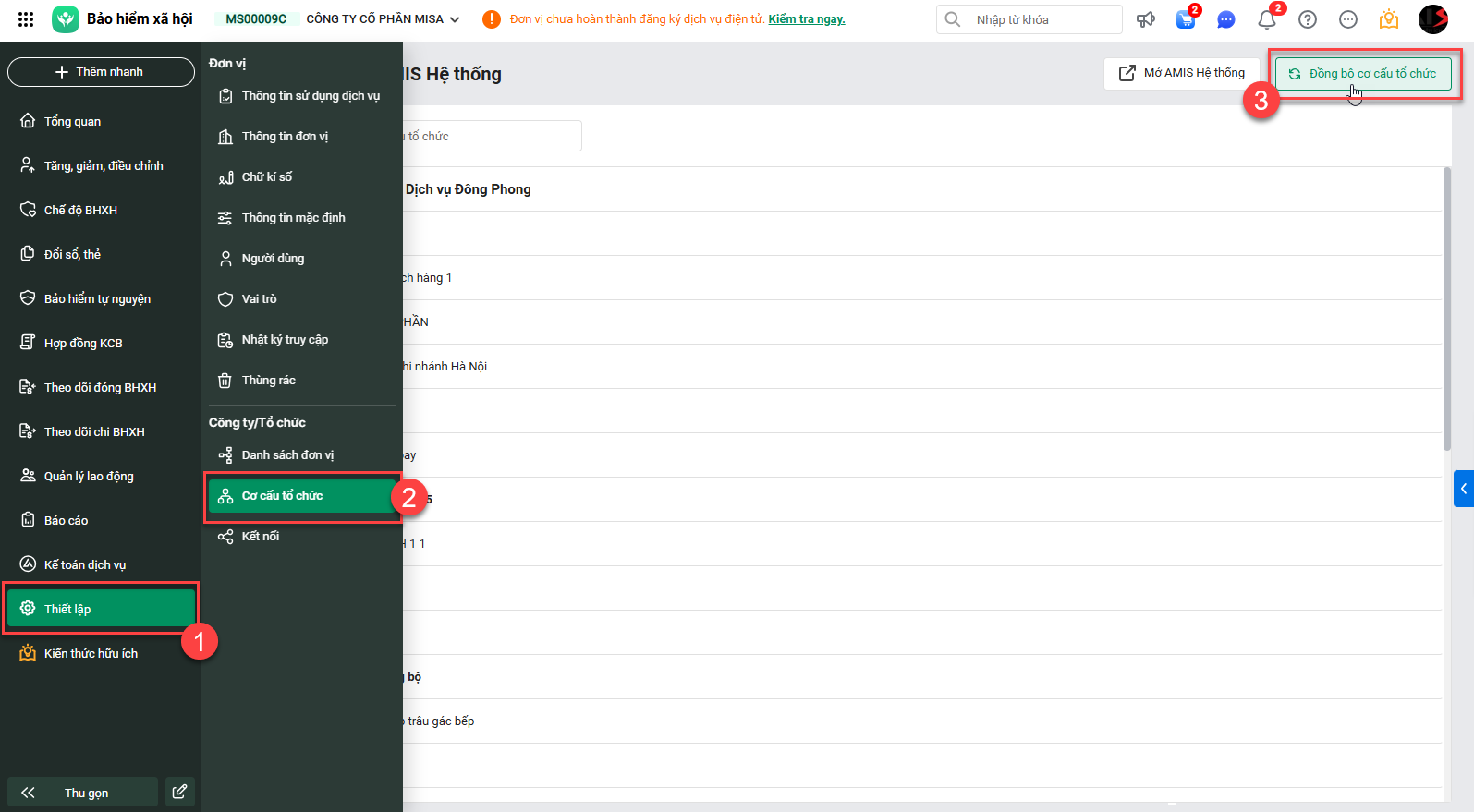 Cho phép cập nhật dữ liệu cơ cấu tổ chức từ AMIS Hệ thống về AMIS BHXH.