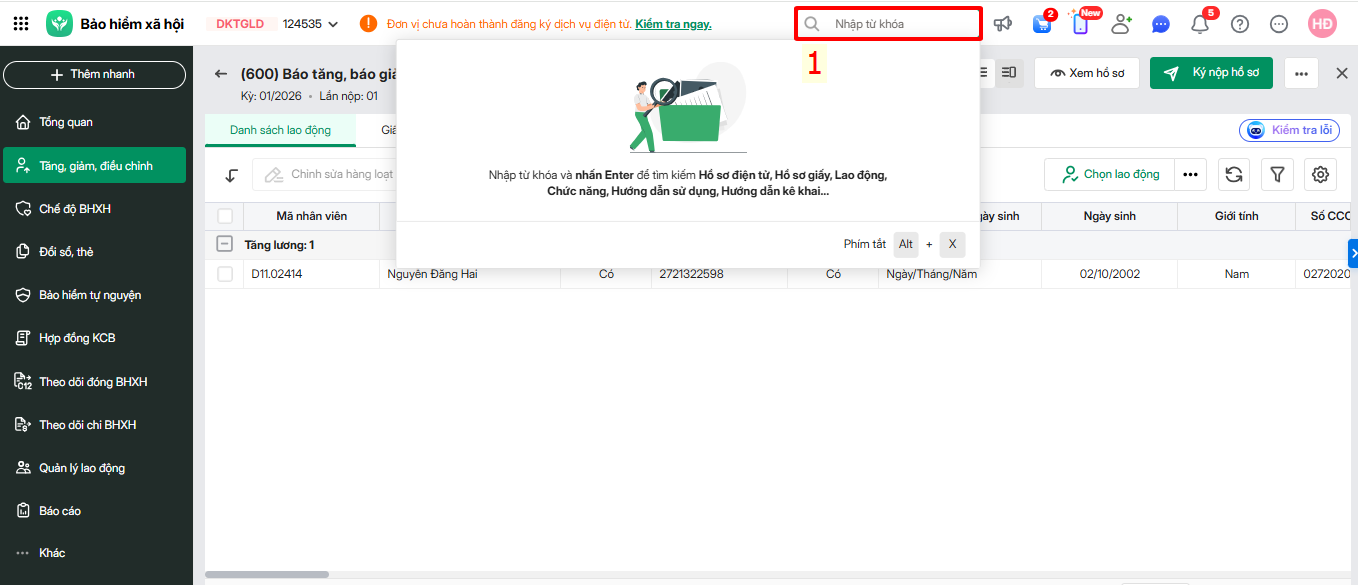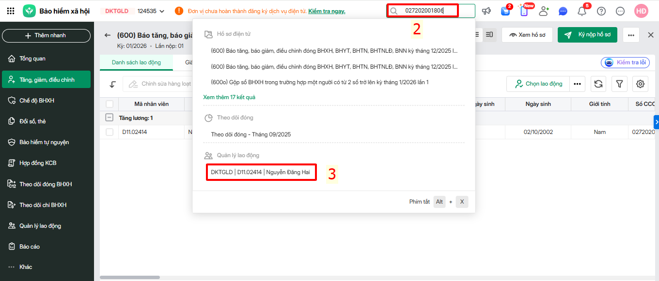 Bước 2: Nhập số CCCD/ĐDCN/Hộ chiếu của lao động.