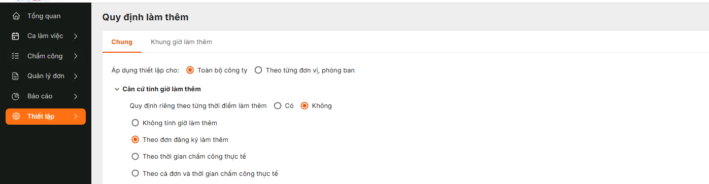3. Thiết lập các căn cứ tính giờ làm thêm