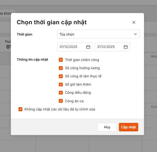 - Chỉnh sửa lại thông tin bảng chấm công. Lưu ý: