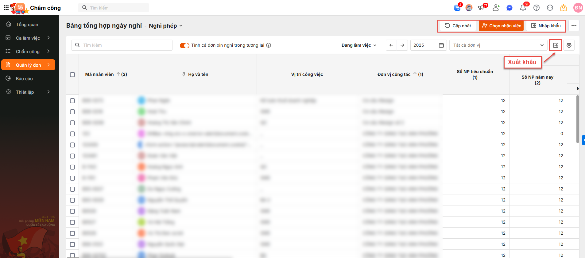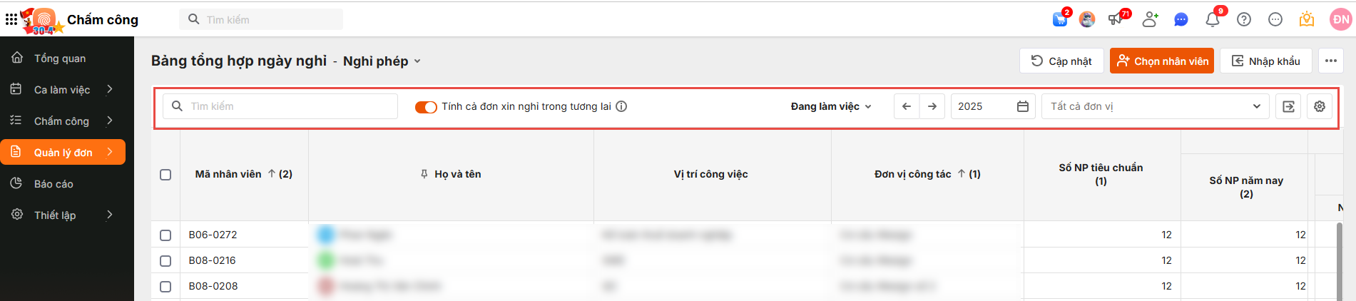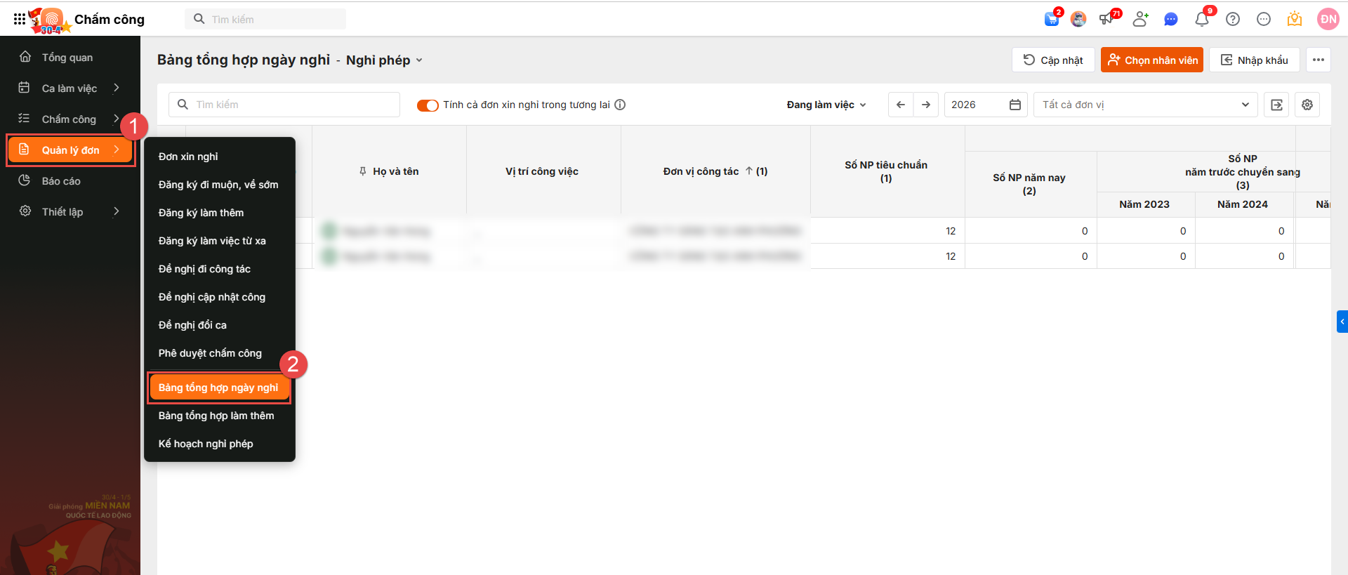 Bước 4: Theo dõi báo cáo tổng hợp ngày nghỉ