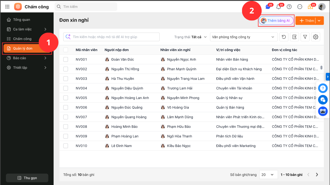 - Hướng dẫn sử dụng tính năng mới về trí tuệ nhân tạo qua hội thoại với AVA Chấm công