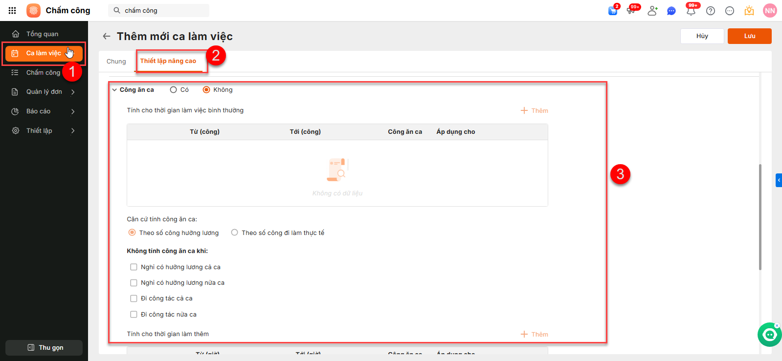 - Thiết lập quy tắc tính công ăn ca nâng cao
