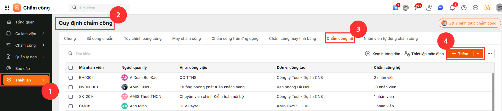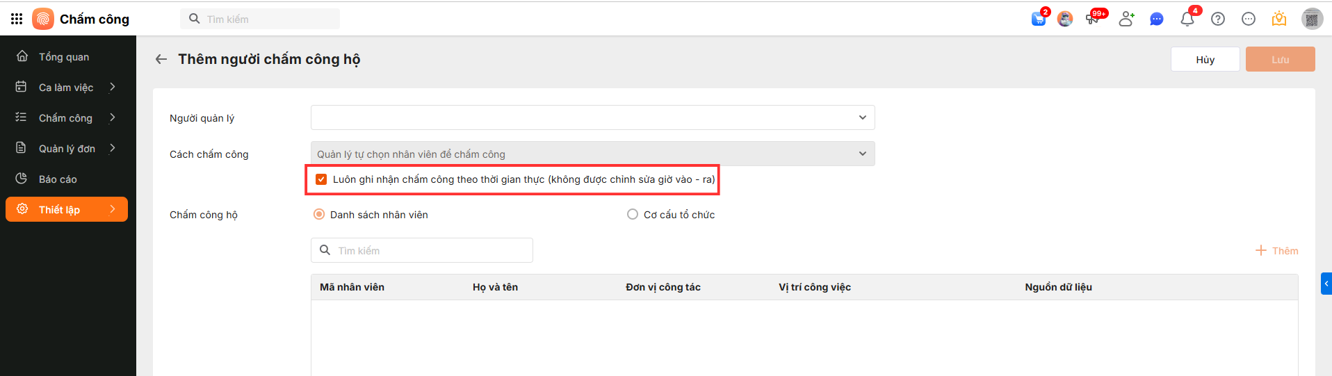 Hướng dẫn thiết lập chấm công hộ theo đúng thời gian thực tế