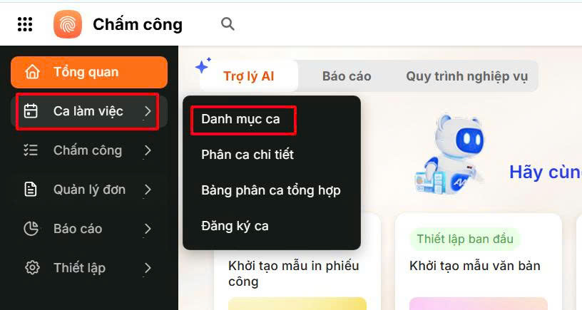 2.2 Khai báo caĐể thêm mới ca làm việc, anh chị có thể lựa chọn 1 trong 2 cách sau: