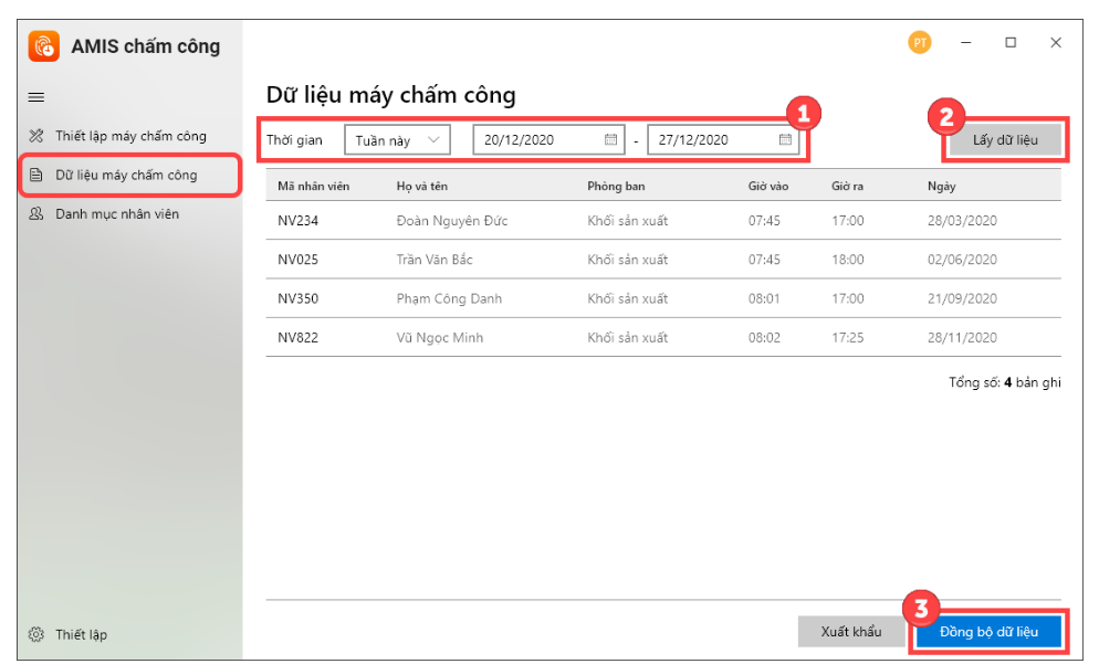 Bước 2: Đồng bộ Nhân viên ở Tool kết nối Máy chấm công và AMIS Chấm công: