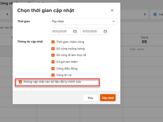Trường hợp này xảy ra khi người dùng sau khi Nhập khẩu xong, lại nhấn nút “Cập nhật” trên bảng dữ liệu.