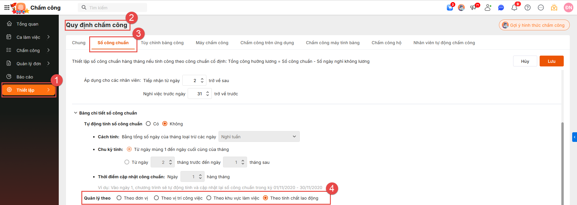 Thiết lập Số công chuẩn theo tính chất lao động