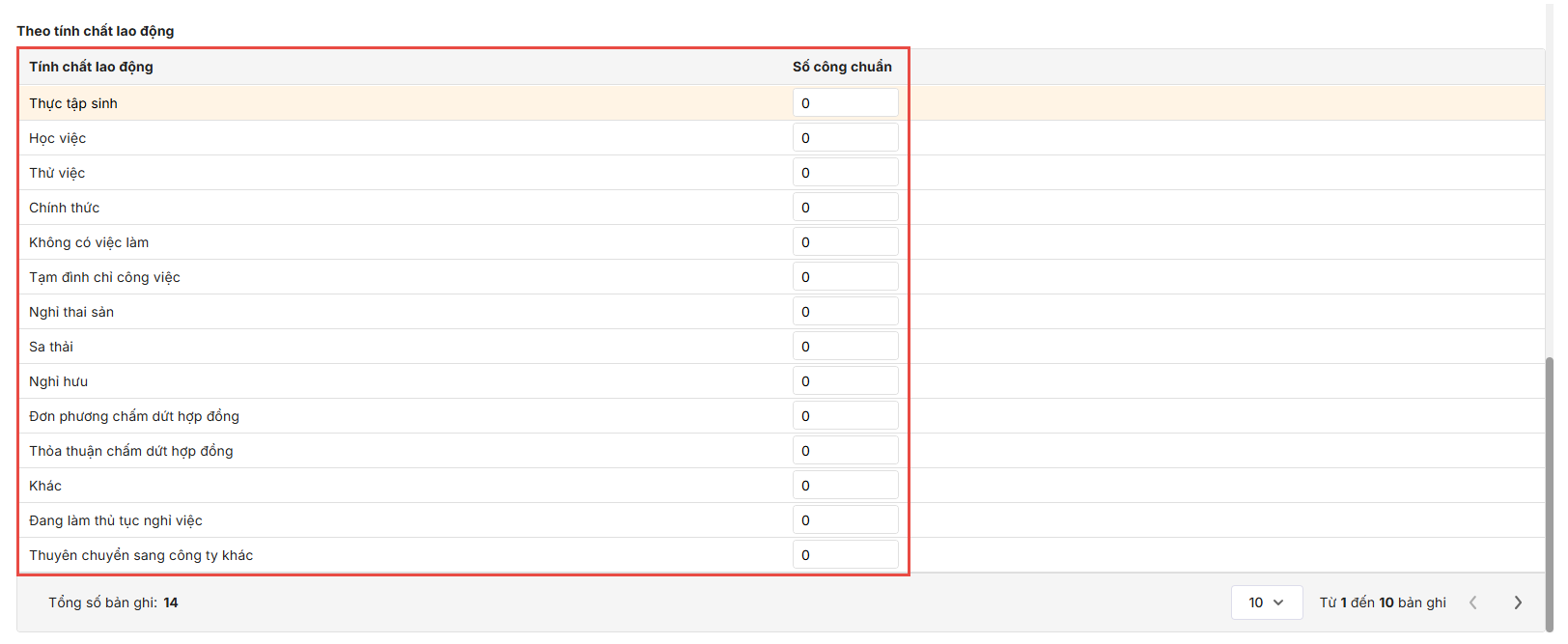 Lưu ý: Nếu nhân viên chưa được gán tính chất lao động hoặc chưa được nhập số công chuẩn, phần mềm sẽ mặc định lấy giá trị 0