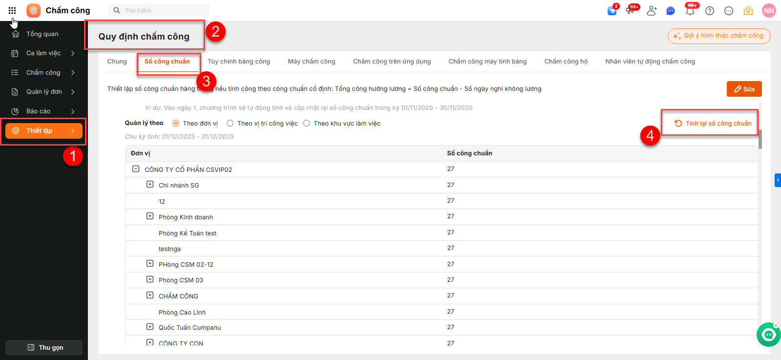 Bài viết nhằm hướng dẫn: Hướng dẫn thiết lập để phần mềm tự động tính và cập nhật số công chuẩn hàng tháng theo quy định ngày nghỉ tuần, giúp HR tiết kiệm thời gian và tránh sai sót khi tính toán thủ công.