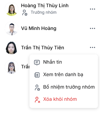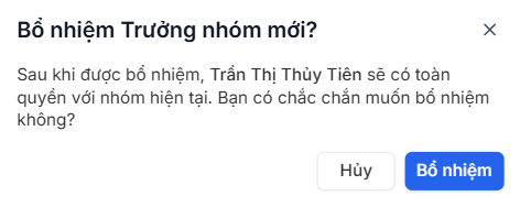 - Nhấn chọn Bổ nhiệm trưởng nhóm