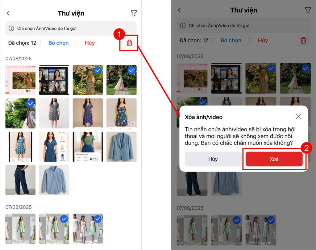 - Anh/Chị chỉ có thể xóa ảnh/video/file do chính bạn gửi lên.