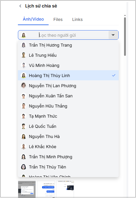 - Tìm tệp cần xóa trong lịch sử chia sẻ