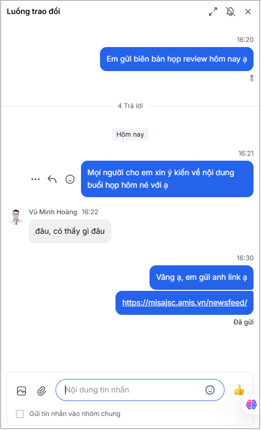 - Bạn có thể nhắn tin và trao đổi tin nhắn trong luồng một cách độc lập.