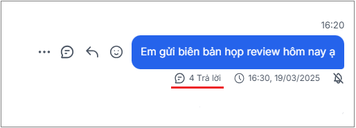- Tại mỗi tin nhắn hiển thị trên đoạn chat, bạn có thể Tạo luồng trao đổi