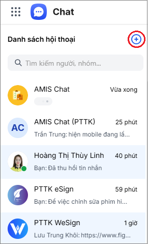 - Trên danh sách hội thoại, nhấn chọn vào biểu tượng Thêm nhóm mới